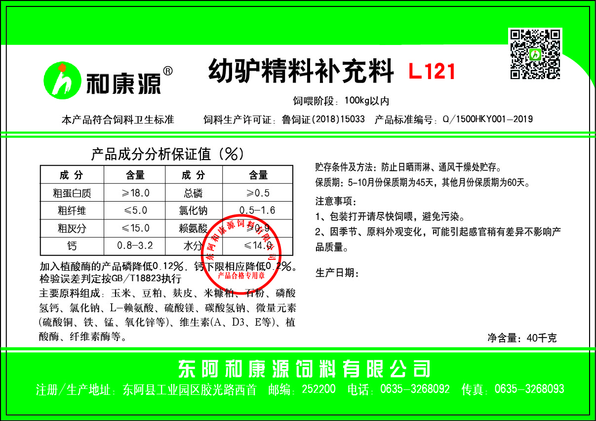 根據驢生長期特點,精選優質原料,滿足生長期驢肌肉和骨骼的營養需要、運用粗纖維和粗蛋白的平衡規律設計而成,滿足驢均衡生長的需要。...