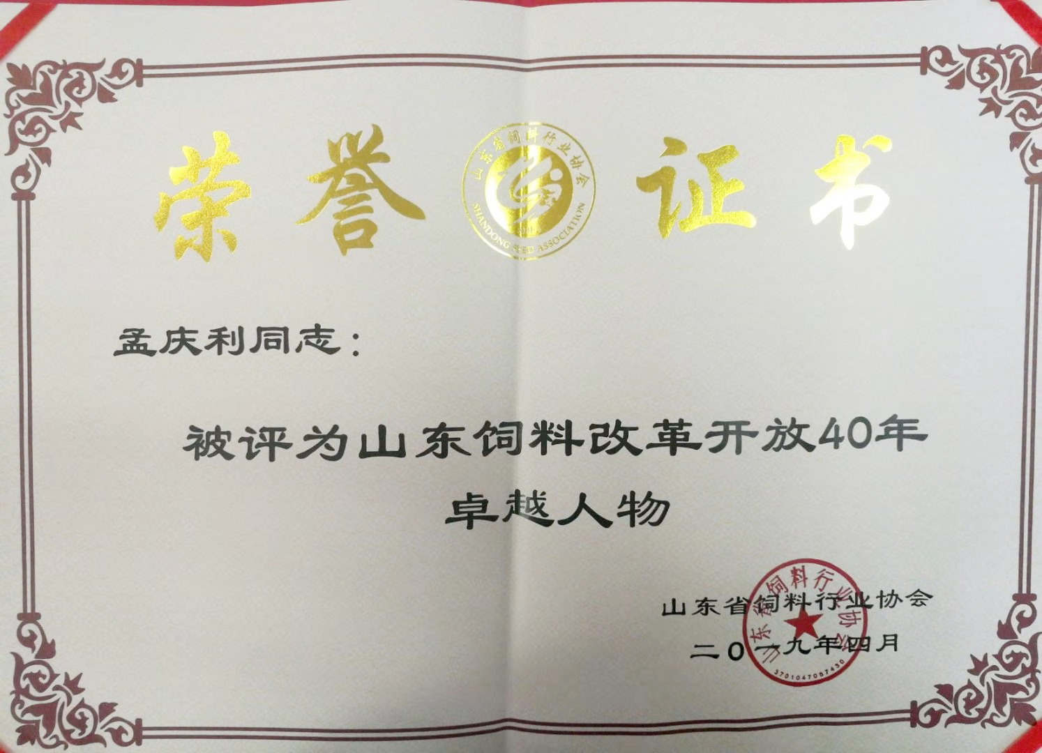 孟慶利董事長被評為山東91短视频二维码改革開放40年卓越人物
