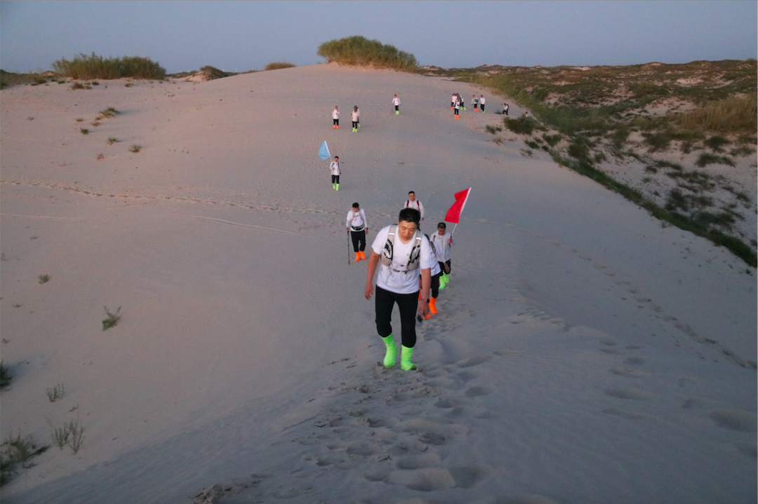 第一天32公裏的挑戰,通過場景模擬,大家感受到在一片陌生的環境下,認識到相信身邊隊友,相互輔助作用的強大。同時,在資源有限、體力不足的情況下,麵對未知的恐懼與無助,最後通過堅強的意誌與信念走出茫茫大漠。